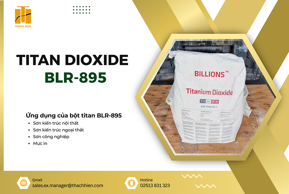 Bột titan BLR-895 (BILLIONS™ BLR-895) là dòng titanium dioxide (TiO₂) rutile cấp sơn (coatings grade), được sản xuất bằng quy trình clorua. Sản phẩm được khuyến nghị cho nhiều ứng dụng sơn nhờ khả năng phân tán vượt trội, độ che phủ cao, độ bóng tốt và màu trắng sáng với ánh xanh dương sạch.