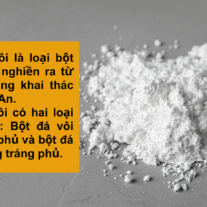 Bột đá vôi trắng CaCO3 được nghiền từ đá trắng tự nhiên, có các thành phần hóa học chủ yếu là: CaCO3 , ngoài ra còn có các tạp chất khác rất ít như: Fe2O3, MgO, SiO2, Al2O3,…