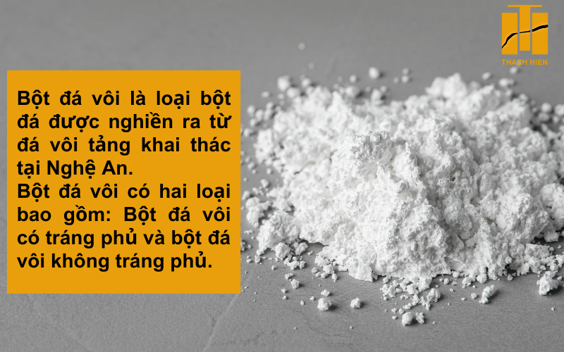 Bột đá CaCO3 là loại bột đá được nghiền ra từ đá vôi được tráng phủ Axit và không tráng phủ có nguồn gốc từ Nghệ An. Đây là một trong những tỉnh thành trữ lượng đá vôi trắng lớn nhất tại Việt Nam. Hàm lượng Canxi Cacbonat trong bột đá càng lớn thì chất lượng sản phẩm càng cao.
