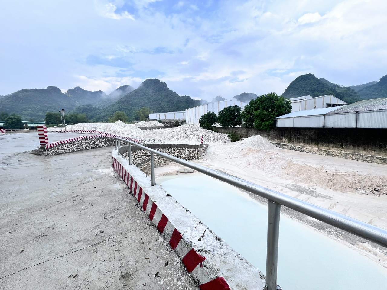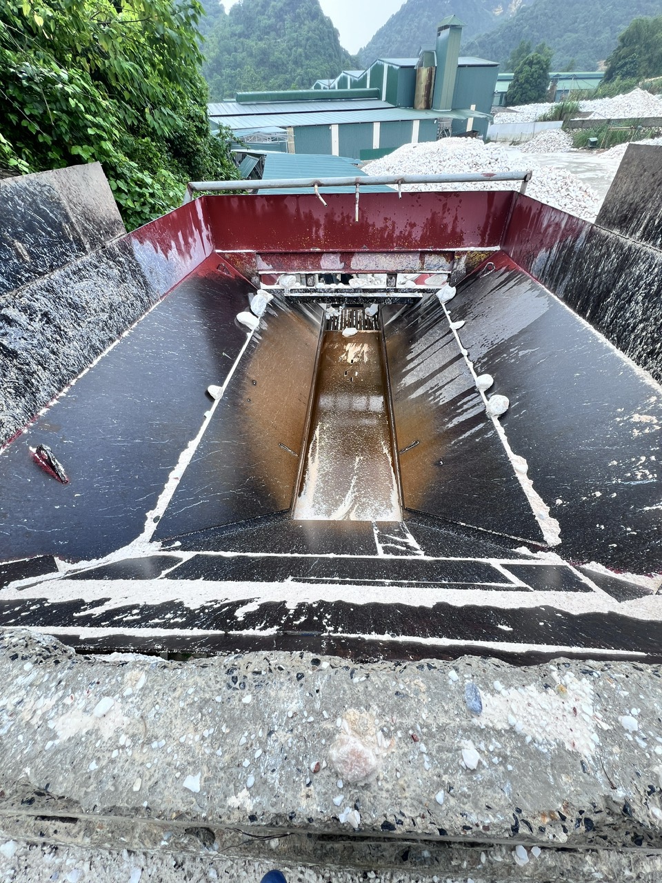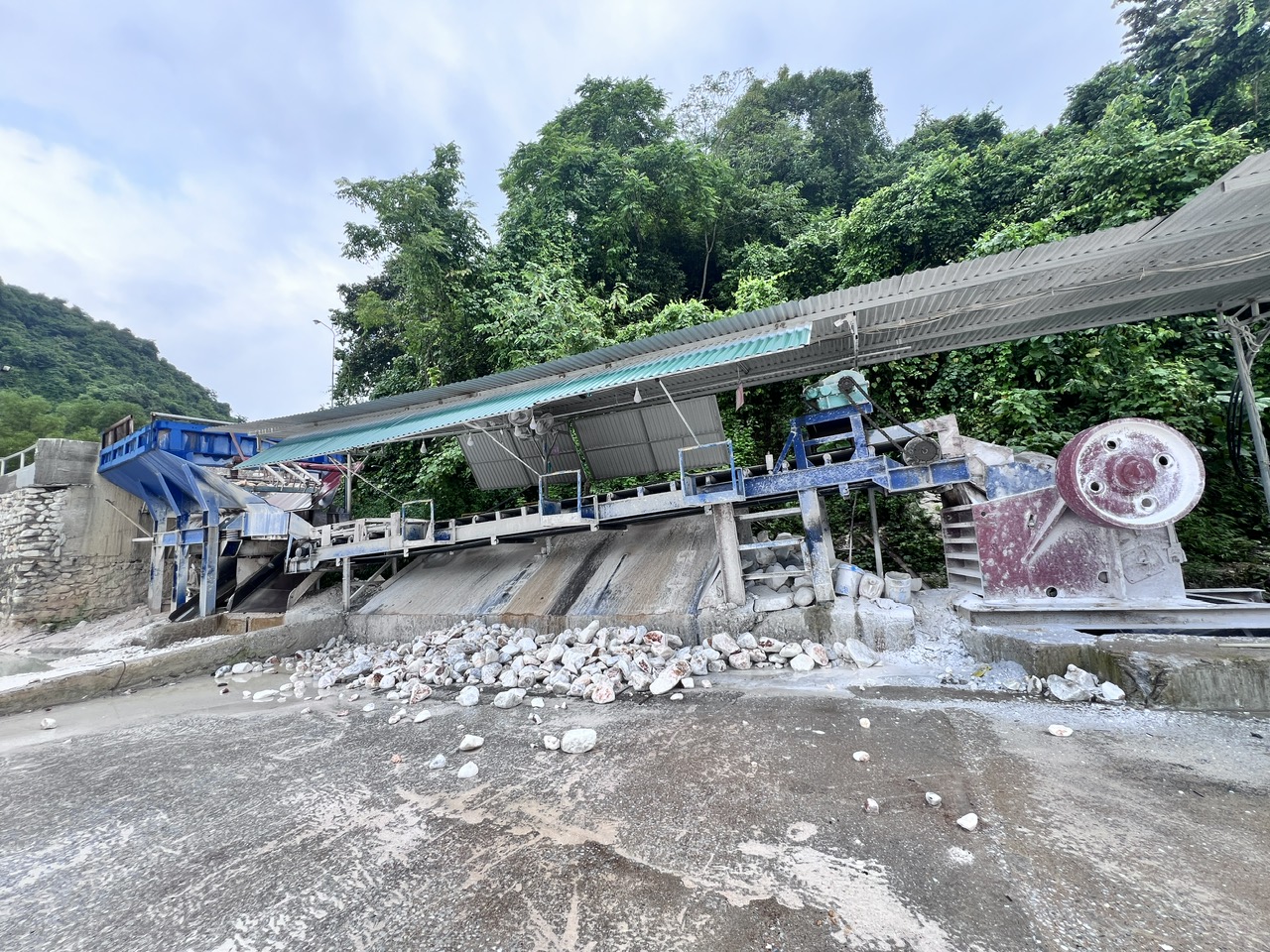 Sau đó ta dùng mìn cho nổ các núi đá này, rồi thu được đá vôi cục ở dạng thô => Đưa đá vôi cục về nhà máy =>Tiến hành phân loại và rửa đá => Phơi đá => Chuyển đá về kho