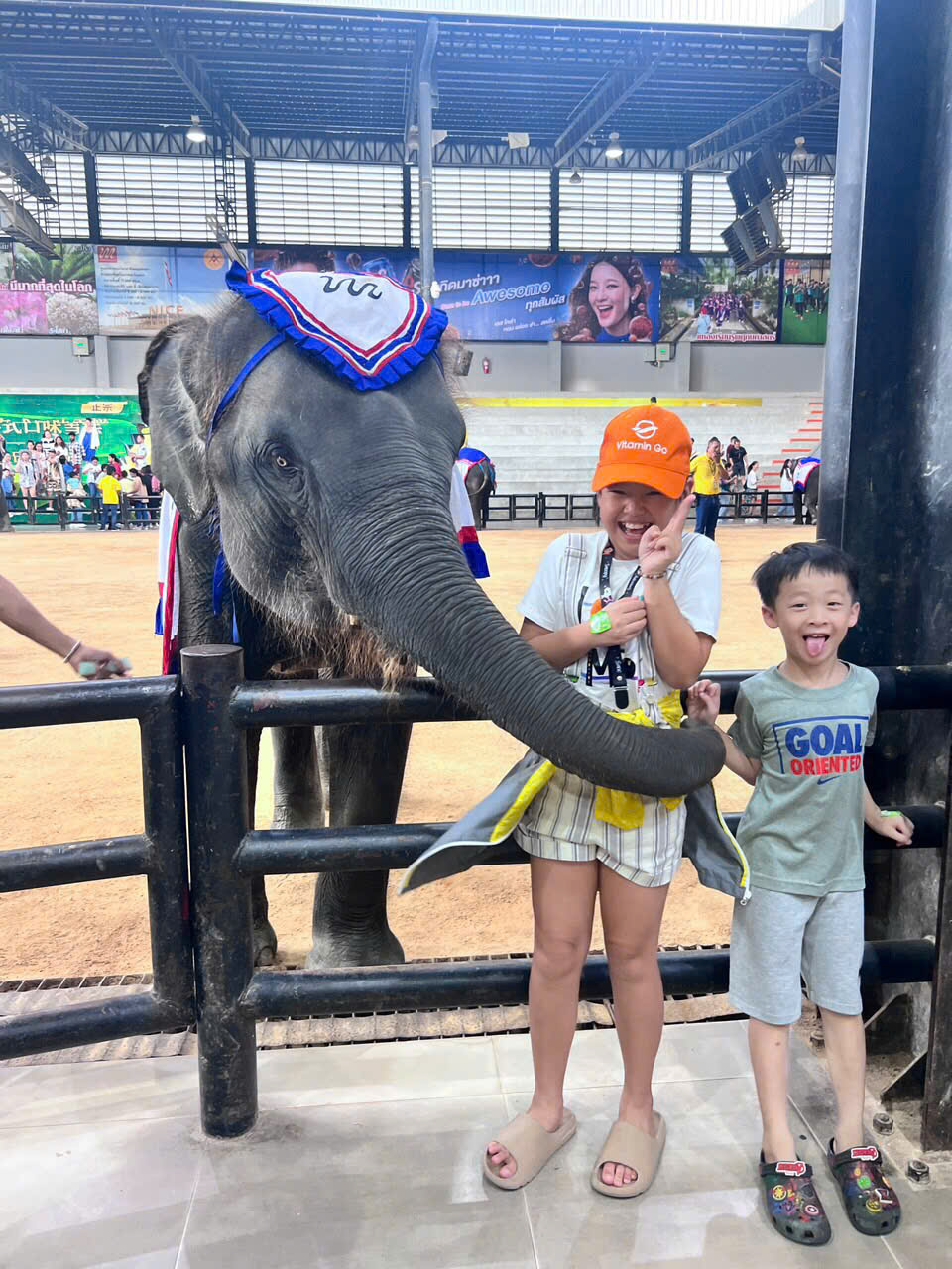 Các em nhỏ vô cùng thích thú khi xem xiếc voi tại Vườn nhiệt đới Nong Nooch